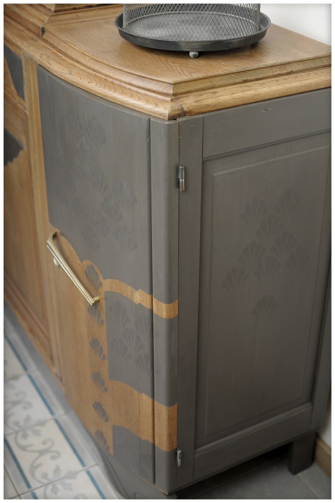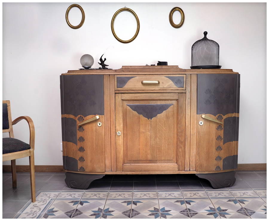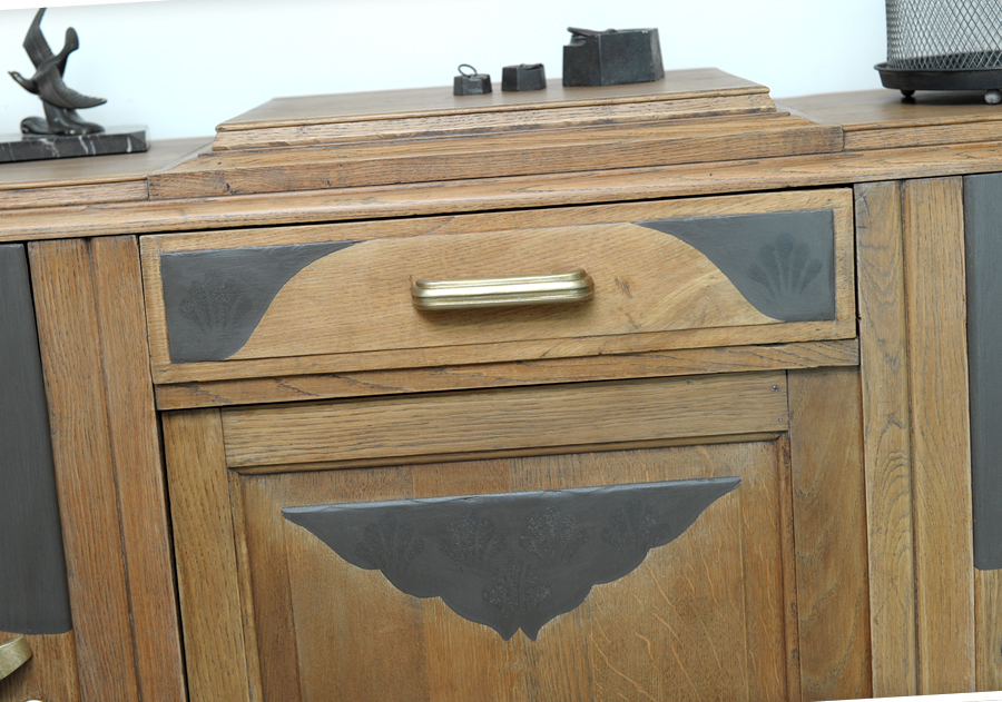 .. un bas de buffet nancéen qui m’a demandé un long travail, notamment pour supprimer ses fleurs incrustées dont il ne voulait plus ( et comme je le comprends