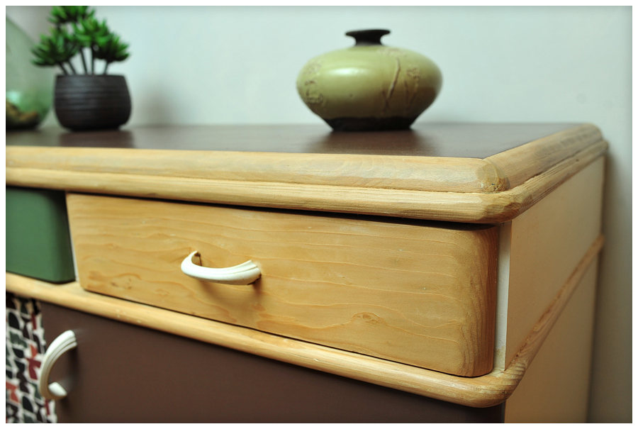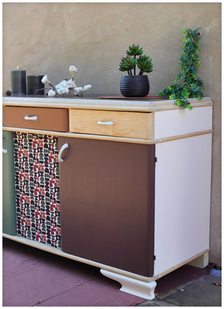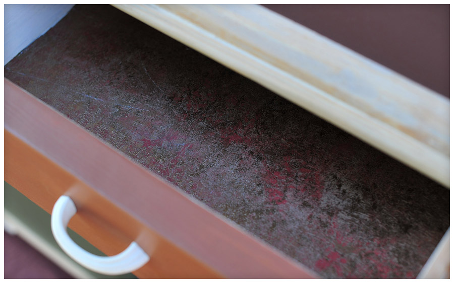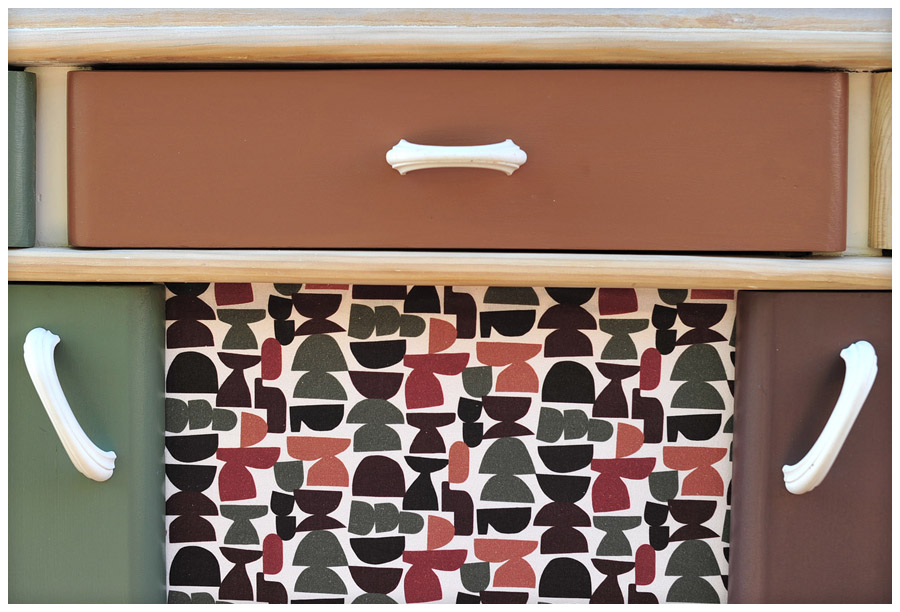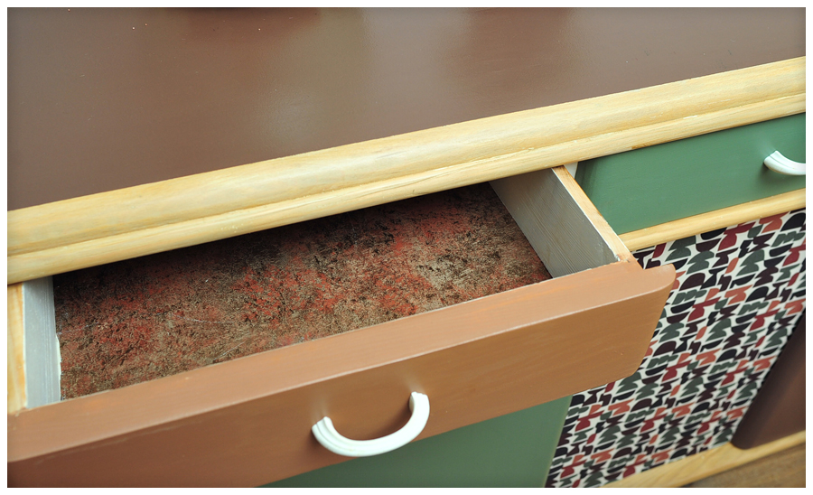 Relooker un meuble déjà peint, on ne m’y reprendra plus. Il était blanc comme du Galak, mais il y avait une deuxième couche à l’intérieur