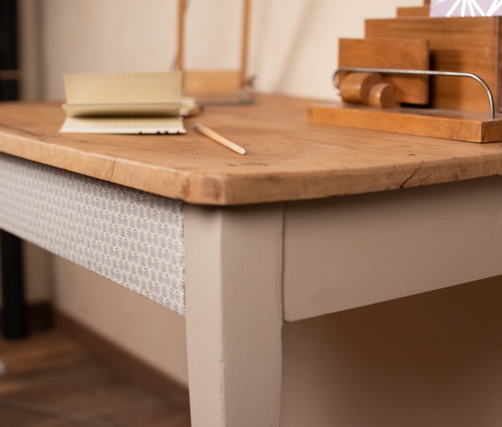 Je vous présente Colin, une ancienne table en bois que j’ai entièrement restaurée et relookée.