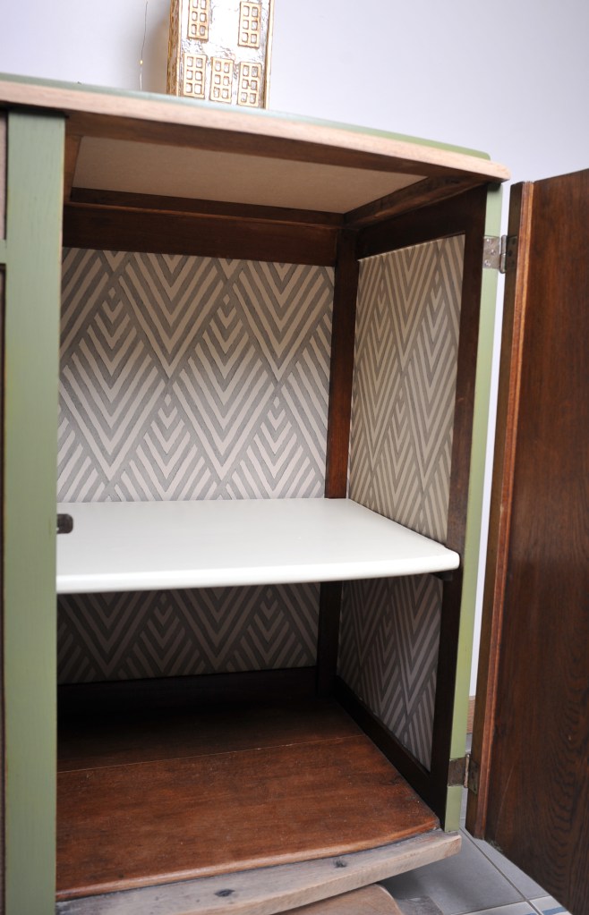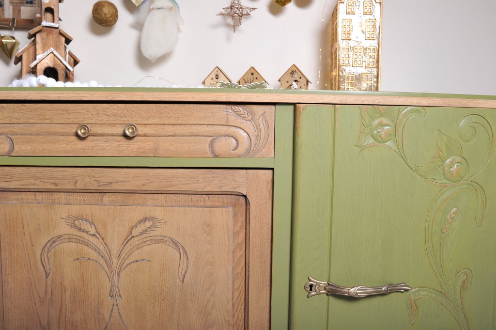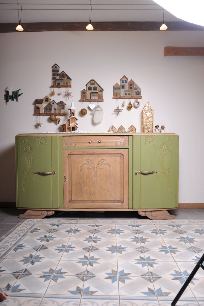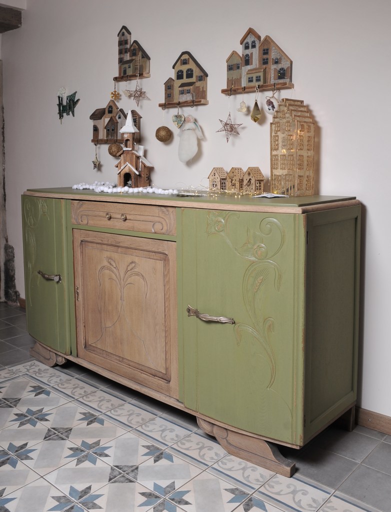 Son vert amande pastel, son chêne clair remis à nu et ses courbes arrondies font d’Irma un meuble doux et chaleureux, plein de charme et dans l’air du temps sans être tape à l’œil.