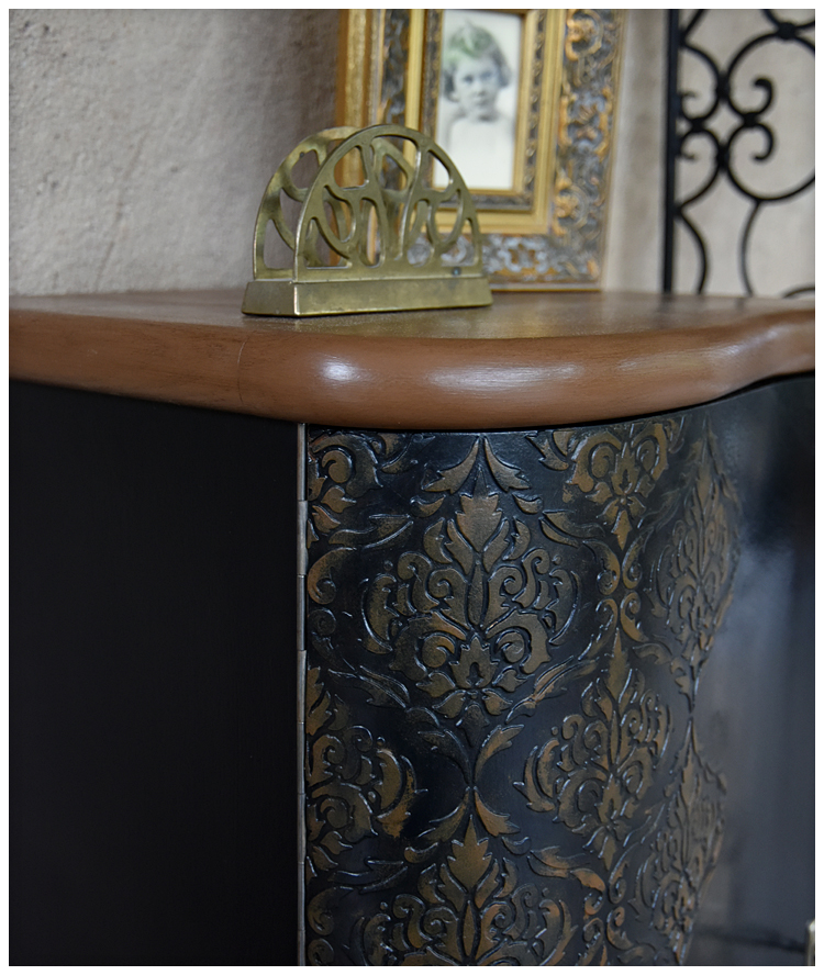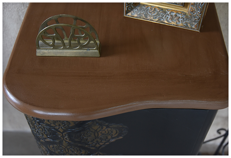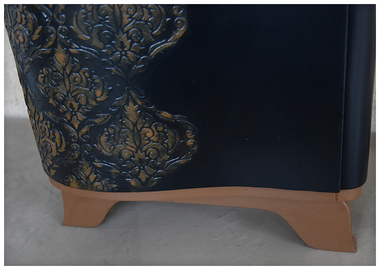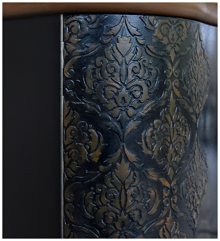Tout en relief, ses médaillons lui confère un côté baroque très tendance. Sa couleur chocolat réhausse le noir satin dont il s’habille.
